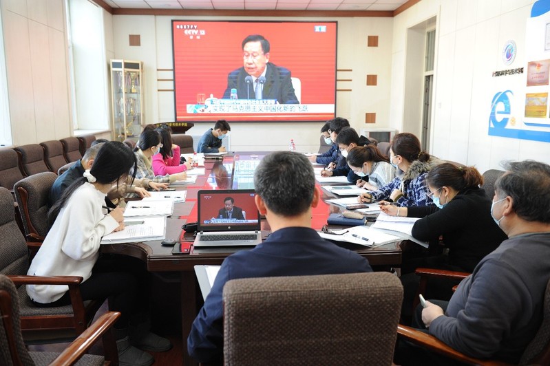 2021年11月12日上午十点,院直机关党支部组织全体党员集中收看了党的十九届六中全会新闻发布会。