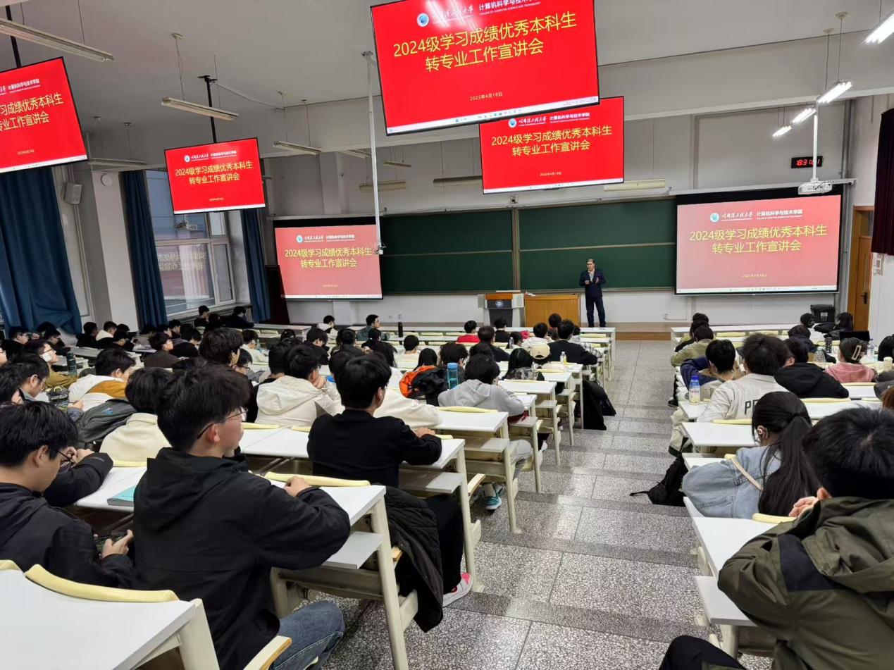 2025年4月18日,ac米兰官网中文网站在主楼N202大教室举行了2024级本科生转专业宣讲会。此次宣讲会的主要目的是为学习成绩优秀的同学提供更多专业选择的机会,帮助他们了解转专业政策与具体操作流程,并为其职业发展提供指导。