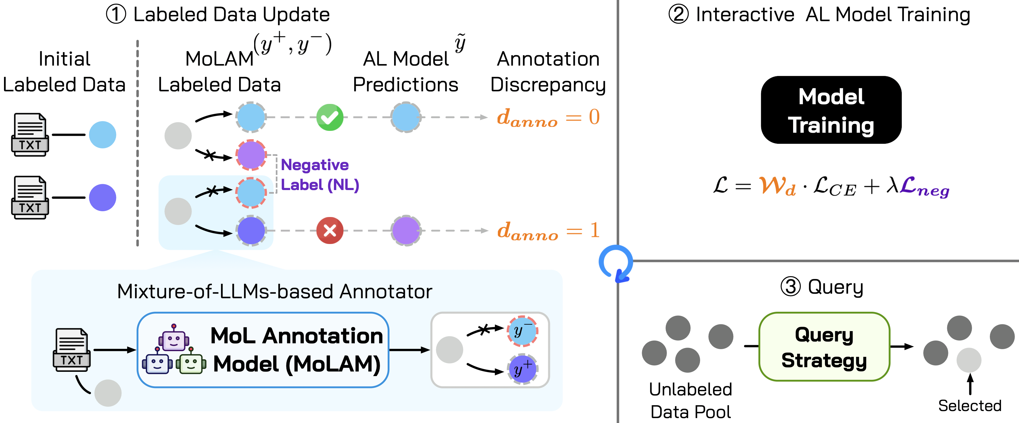 《Next Generation Active Learning: Mixture of LLMs in the Loop》由齐媛媛、杨晓昊、卢觉庆、顾国祥、Joanne Enticott、刘刚、杜岚合作完成。论文聚焦主动学习框架革新,旨在解决大语言模型标注质量不足与噪声问题,提出 MoLAM 标注模型与鲁棒性优化机制,通过多轻量级 LLM 协同、伪标注增强、负标签识别及负学习等技术提升标注可靠性。该框架在四个基准数据集上实现零人工标注,性能与传统人工标注相当,标注准确率与噪声鲁棒性显著提升,且具备轻量化部署优势。