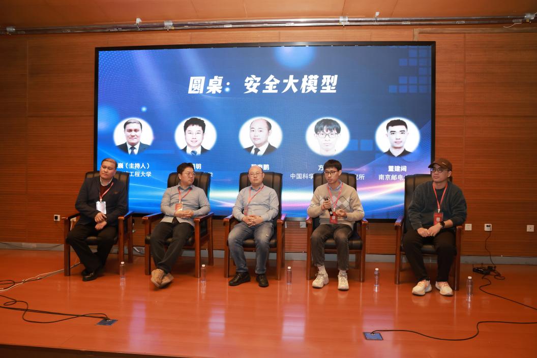 圆桌讨论环节围绕模型可信治理、模型安全评测体系、AI内容安全、数据安全等议题展开,由ac米兰官网中文网站王巍教授主持。山东大学葛春鹏教授、中国科学院信息工程研究所方栋梁副研究员、南京邮电大学董建阔副教授、南京理工大学周明博士从技术前沿、产业应用与治理体系等多个角度进行了交流,提出构建安全可控的大模型体系、完善模型安全标准、推进产学研协同创新等重要建议,为推动网络空间安全技术研究与实践提供了重要参考。
